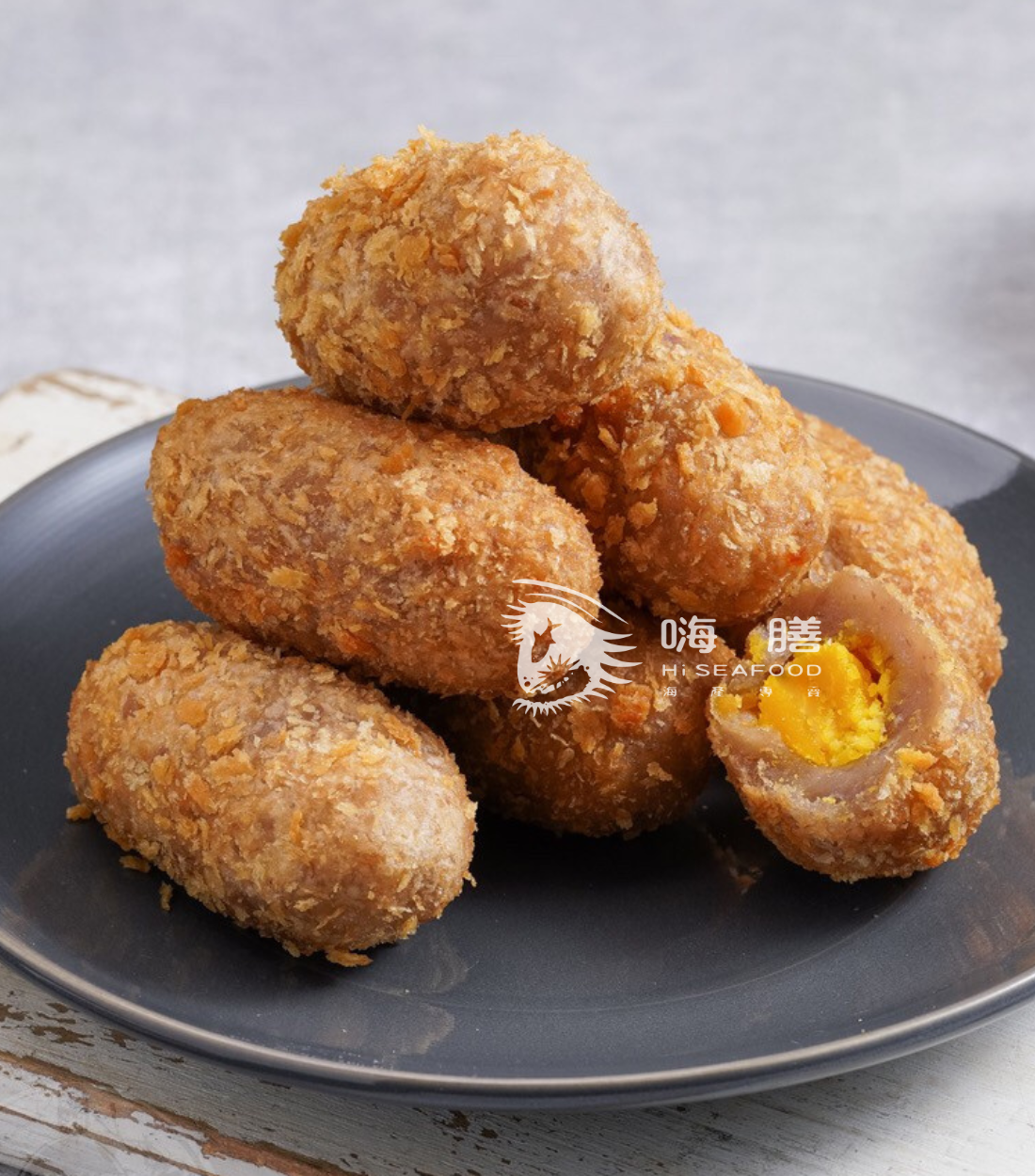 芋頭、鴨蛋蛋黃、麵包油炸粉、水、玉米澱粉、酵母、豬油、鹽、胡椒